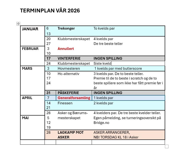 Det har dessverre skjedd en feil 3.februar, så resultatene fra tredje kveld av Klubbmesterskapet er mistet. Vi må annullere den spillekvelden, men spiller da de to siste kveldene av klubbmesterskapet 10. og 24. februar.